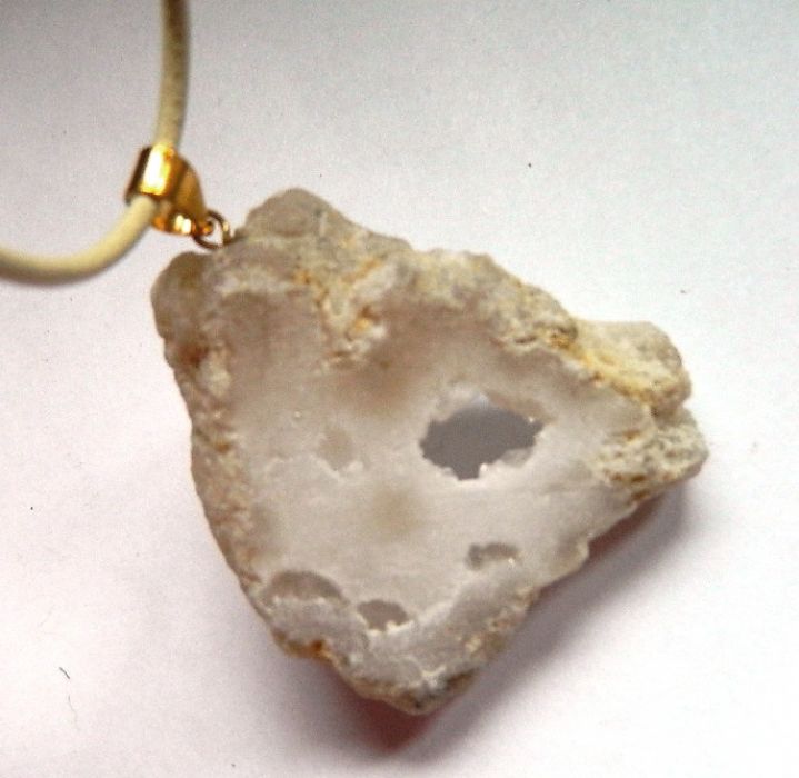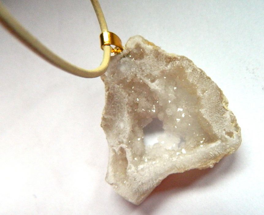 Nazwa produktu: Biały matowy kwarc w złocie, druzy, wisior na rzemieniu