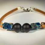 Bransoletka handmade na rzemieniu z jaspisem cesarskim granatowym i z matowym "Black Stone". Zapięcie z zawiasem.