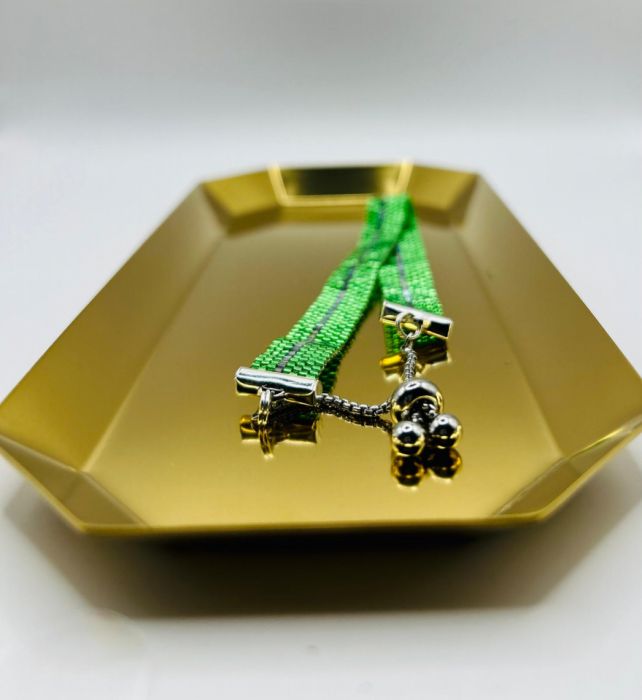 Bransoletka zielona z satynowymi koralikami pośrodku. Możliwość wykonania w różnych kolorystykach i z różnego rodzaju zapięciem :)