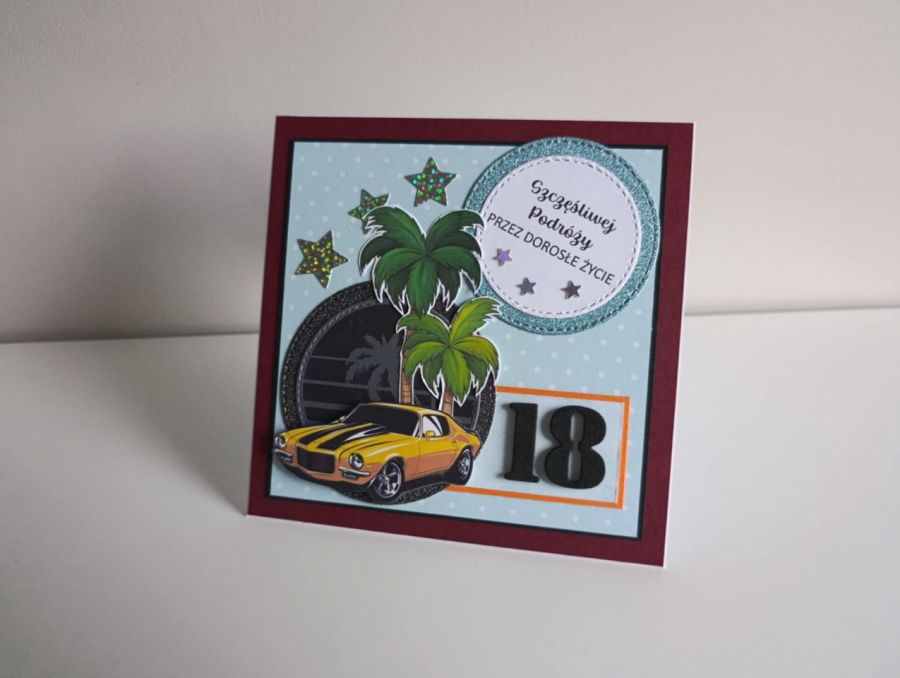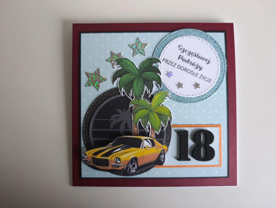 Zadaj pytanie dotyczące produktu: Kartka na urodziny oseiemnastka z samochodem