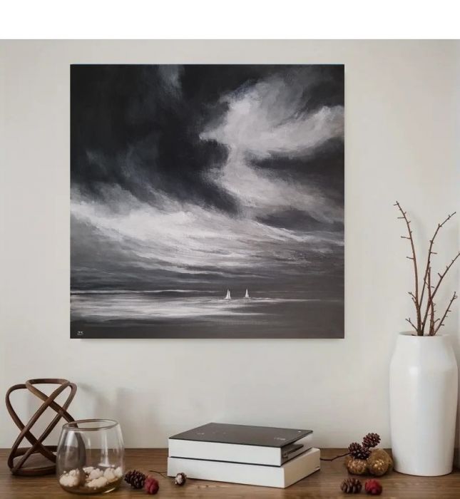 Boki zamalowane w kolorze tła, może więc wisieć bez ramy(obraz sprzedawany bez ramy)