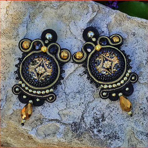 Nazwa produktu: Nerida- czarno złote kolczyki sutasz
