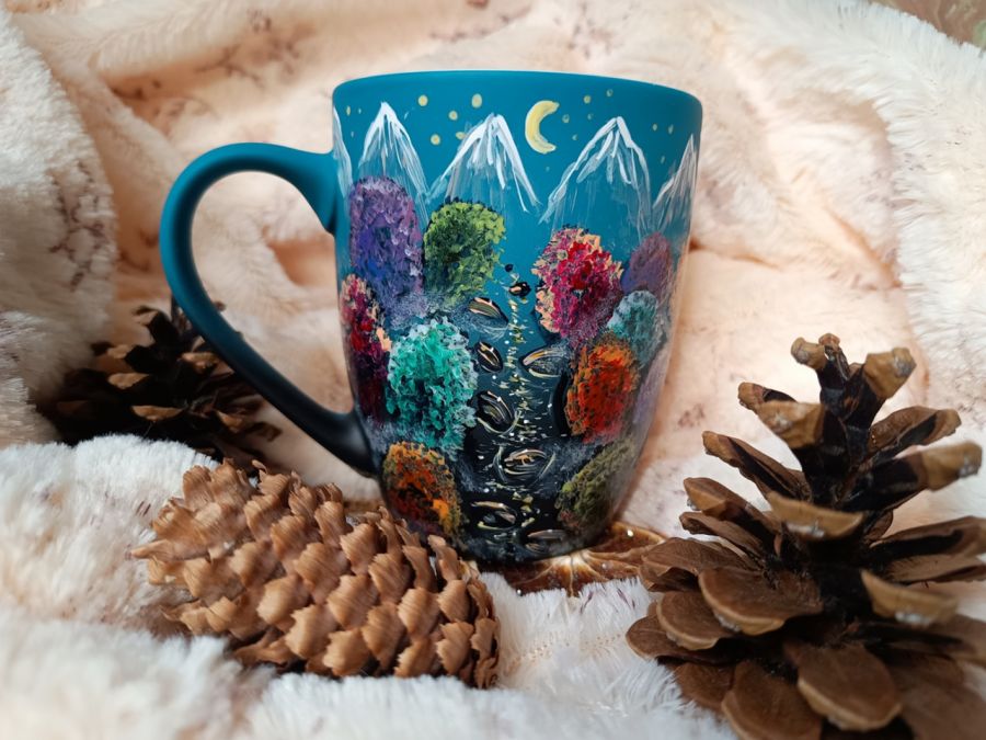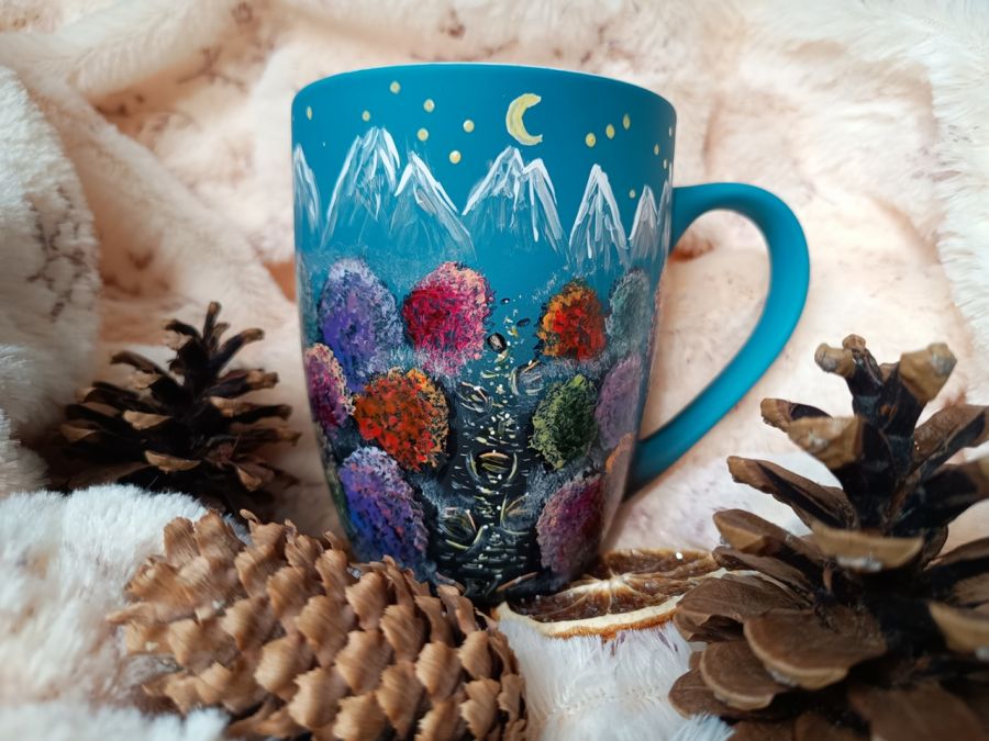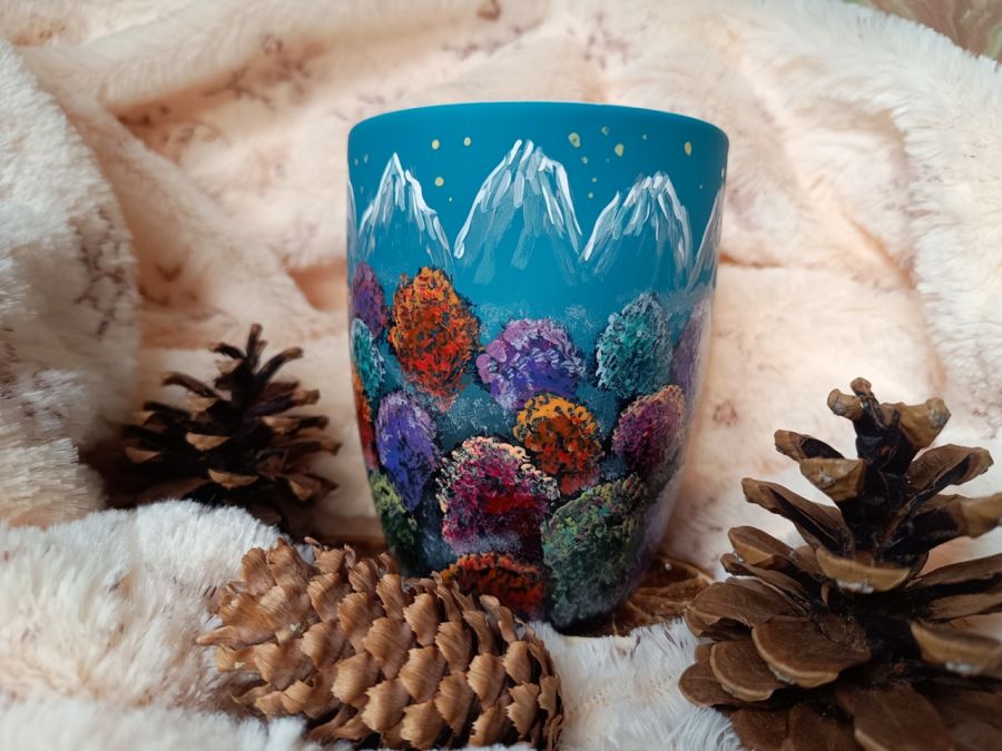 Kubek malowany wiele godzin z wielką troską o wszelkie szczegóły z miłości do natury, z miłości do tego co piękne i ulotne..