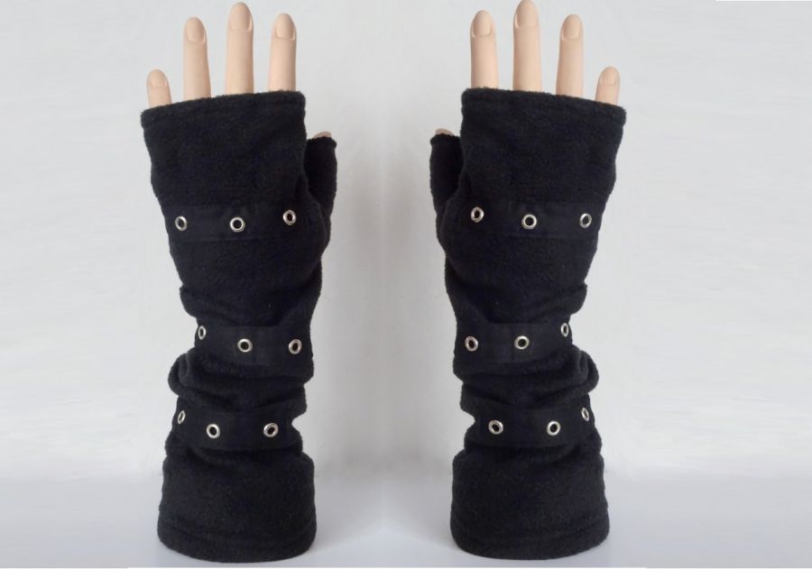 Rękawiczki typu mitenki z jednym palcem. Wykonane z dzianiny dresowej bawełnianej.