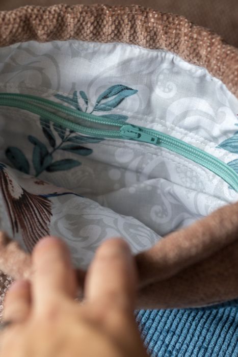 Środek torebki wykończony jest bawełnianą podszewką.