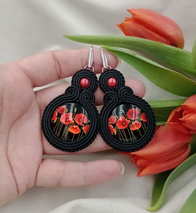 Zadaj pytanie dotyczące produktu: Sutasz duże kolczyki maki makowe soutache