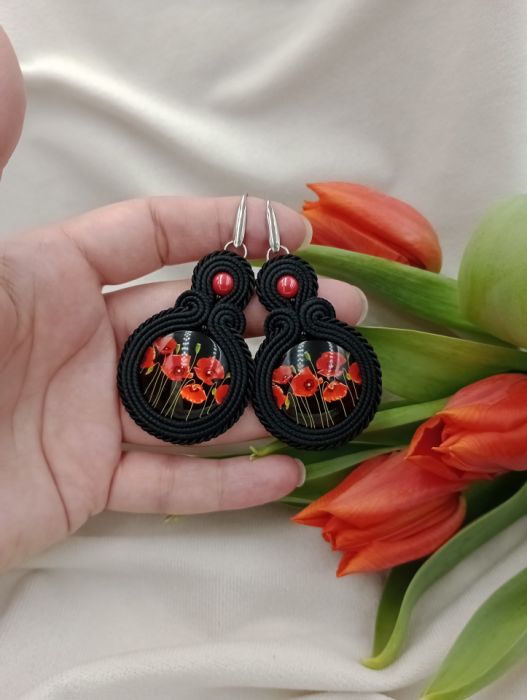 Nazwa produktu: Sutasz duże kolczyki maki makowe soutache