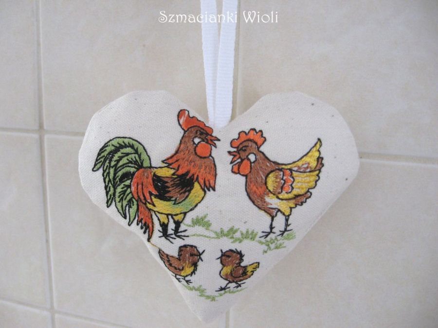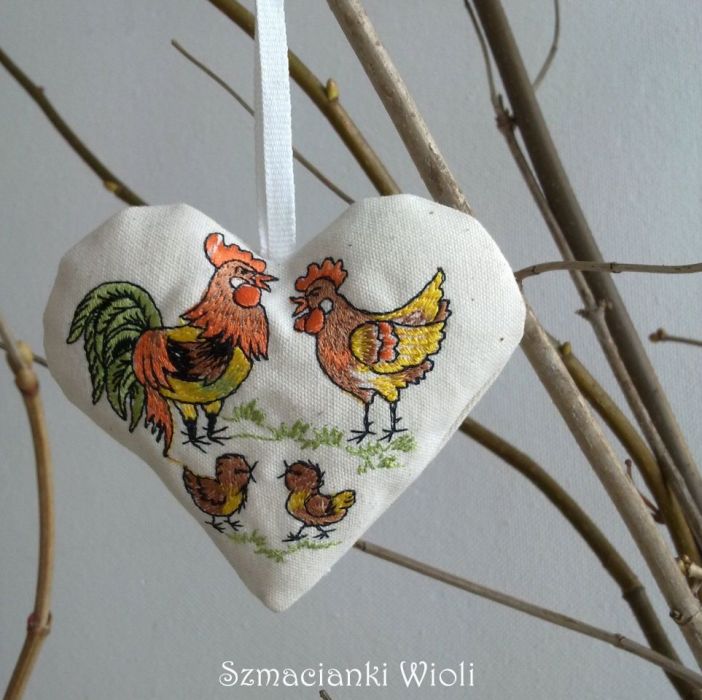 Haftowane serduszko-zawieszka z Wielkanocnym motywem.